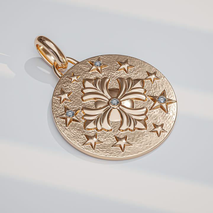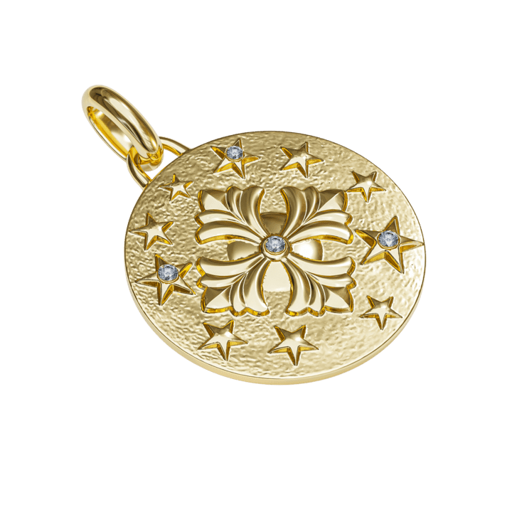 בצרפתית- אלה מבטא את המותג, אצילי ואלגנטי. תליון המטבע משדר עוצמה ואפלוליות שנותנת כוח ואומץ לצד עדינות ורכות. הזהב מוסיף לו נגיעה של אור ויוקרה. תליון שמשתלב עם עוד שרשראות ועם כל תכשיט בתיבת התכשיטים שלך.