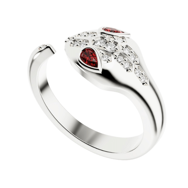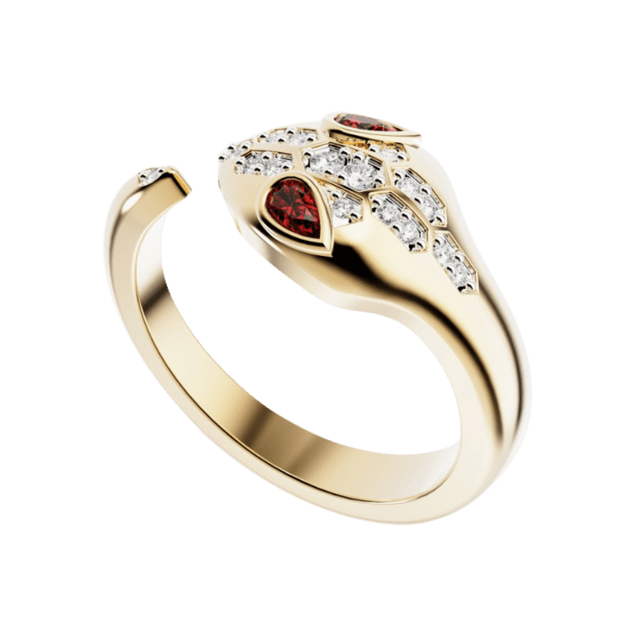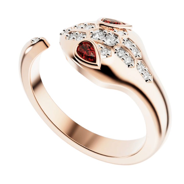 טבעת נחש למזל, בשיבוץ יהלומים ועיינים בשיבוץ אבני חן.