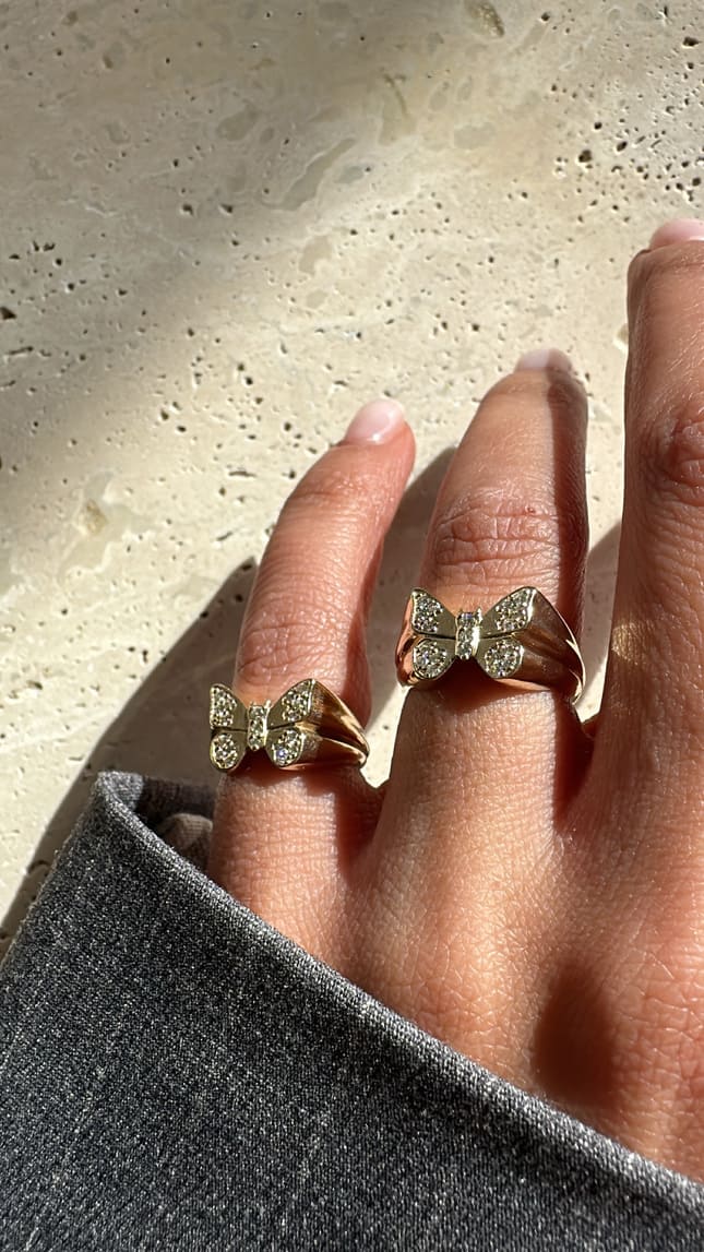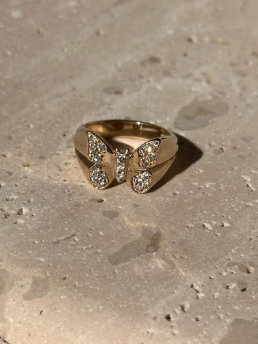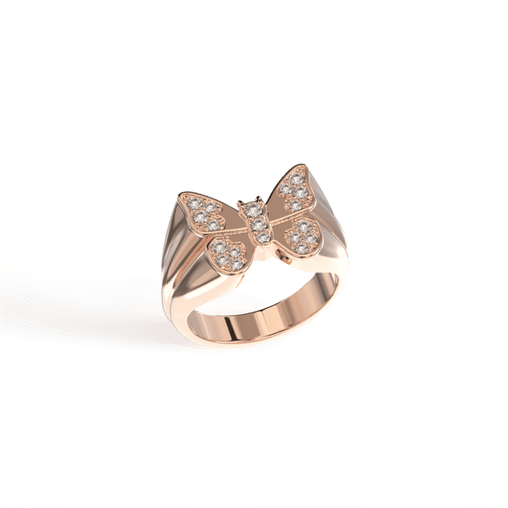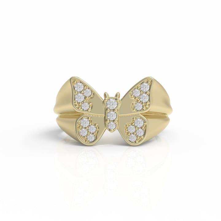 טבעת חותם פרפר מזהב 14K משובצת יהלומים. השילוב בין האיכות הגבוהה של החומרים והעיצוב המרשים מוסיף מראה יוקרתי לכל מי שיבחר לענוד אותה.