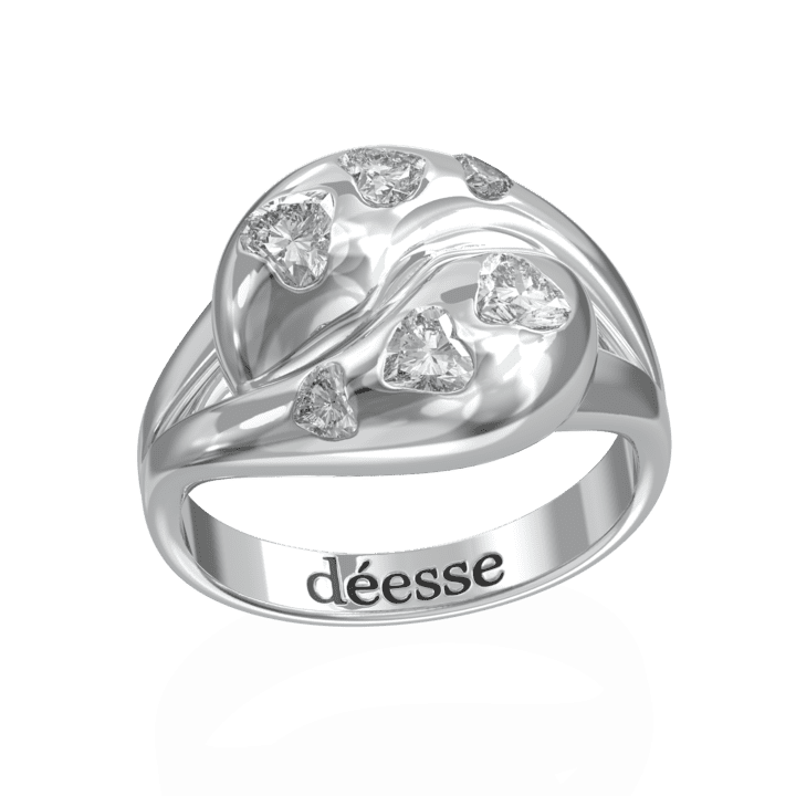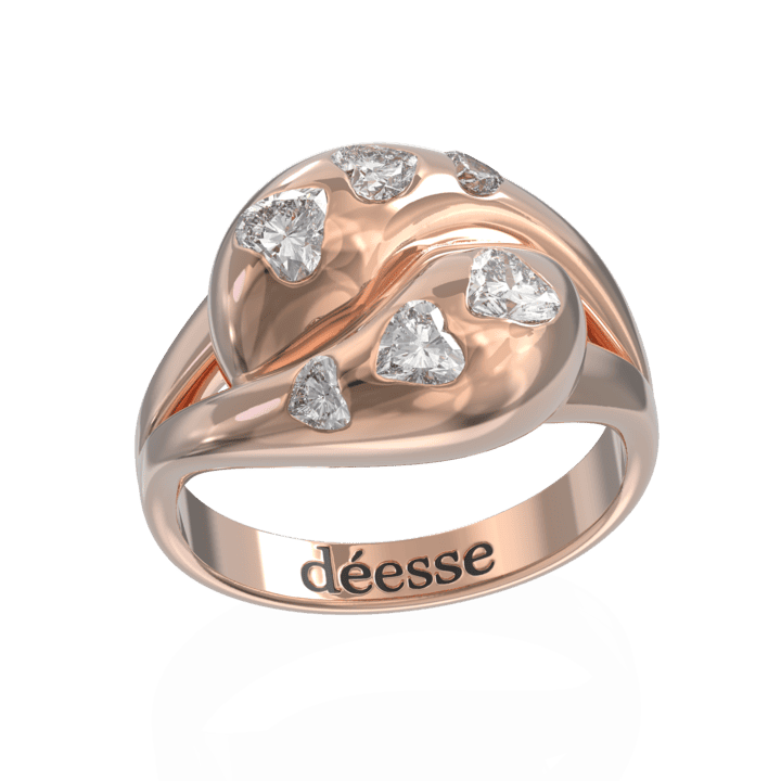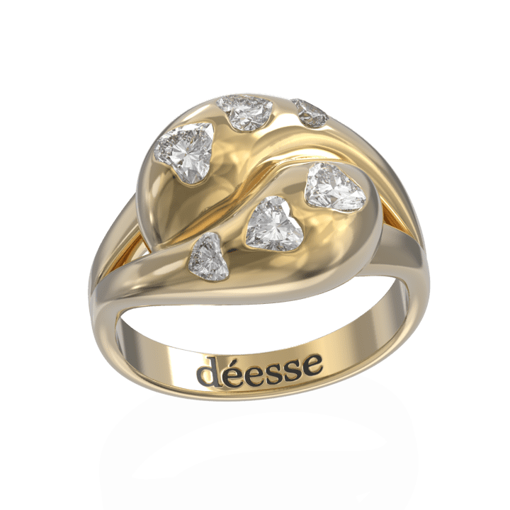 טבעת יין-יאנג עם יהלומים בחיתוך לב, עשויה זהב 14K העיצוב שלה נשי ומתוחכם למראה אלגנטי ועם זאת מיוחד.